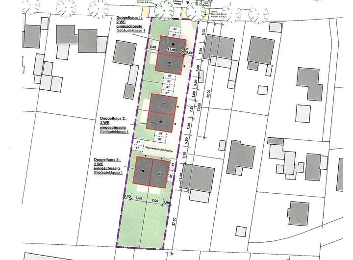 Es liegt ein positiver Bauvorbescheid vor, demnach ist die Errichtung von 3 Doppelhäusern mit je ca. 165 m² Grundfläche erlaubt.