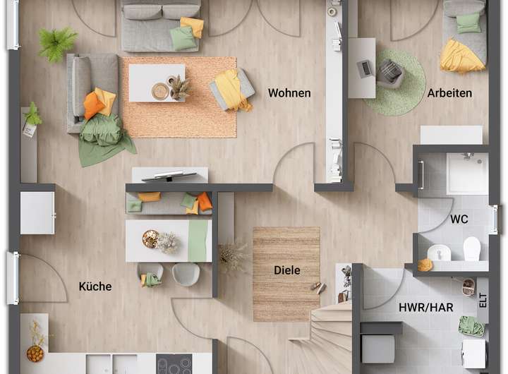 • Fußbodenheizung: Warme Füße? Auch die Fußbodenheizung ist inklusive. Sie steigert nicht nur den Wert Ihres Hauses, sondern sorgt ganz nebenbei noch für echtes Wohngefühl.