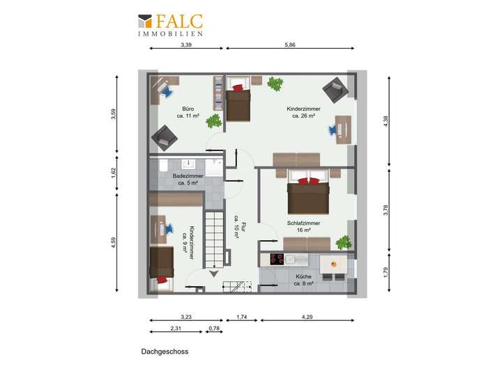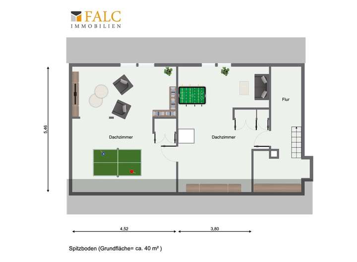 Zur Info, aufgrund der 3D-Perspektive wirken die Räumlichkeiten in der Regel etwas kleiner als in der Realität vor Ort.