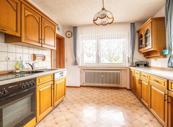 Dieser großzügige und freistehende Bungalow mit ca. 156 m² Wohnfläche und einem umliegenden, herrlichen, ca. 1.053 m² großen Grundstück befindet sich in ruhiger Sackgassenlage von Bruchköbel. Es erwarten Sie ein heller Wohnbereich, eine separate Küche, inkl. Einbauküche sowie ein geräumiges Esszimmer mit Zugang zur großen, westlich ausgerichteten Terrasse. Des Weiteren verfügt der Bungalow über ein vom Platz her angemessenes Schlafzimmer, drei helle Kinder- bzw. Arbeitszimmer, ein Tageslichtbad mit Wanne und Dusche sowie ein separates Gäste-WC mit Fenster. Das Haus ist voll unterkellert. Hier stehen Ihnen neben dem Heizungs- und Waschraum mehrere geräumige Abstellräume zur Verfügung. Für Ihre PKWs sind eine Garage und zwei Außenstellplätze vorgesehen.