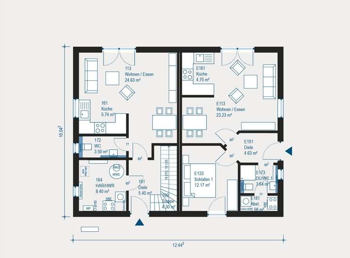 Willkommen in Ihrem Traum vom Mehrfamilienhaus in der idyllischen Gemeinde Stein-Bockenheim! Dieses geplante Objekt wird ganz auf Ihre persönlichen Wünsche abgestimmt. Mit seinen 202,78 m² Wohnfläche und insgesamt 6 Zimmern bietet es ausreichend Raum für Familie und Gäste. Die zwei Etagen sind clever gestaltet und bieten vier Schlafzimmer, zwei Badezimmer - eines davon mit Dusche und Badewanne - sowie ein zusätzliches Gäste-WC. Hochwertige Fliesen und strapazierfähiges Laminat verbinden Ästhetik mit Funktion und schaffen einen pflegeleichten, warmen Wohnbereich. Die moderne Wärmepumpe sorgt für eine umweltfreundliche und effiziente Beheizung Ihres Hauses und entspricht dem KFW55 Standard, was Ihnen auf lange Sicht Energiekosten einspart.