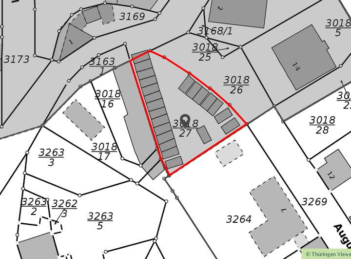 Das Grundstück ist eben und nahezu dreieckig geschnitten. Die Garagen stehen an den Flurstücks-grenzen, eine einzelne Garage befindet sich mittig im Grundstück. Eine Eigentumsgarage ist derzeit nicht vermietet.