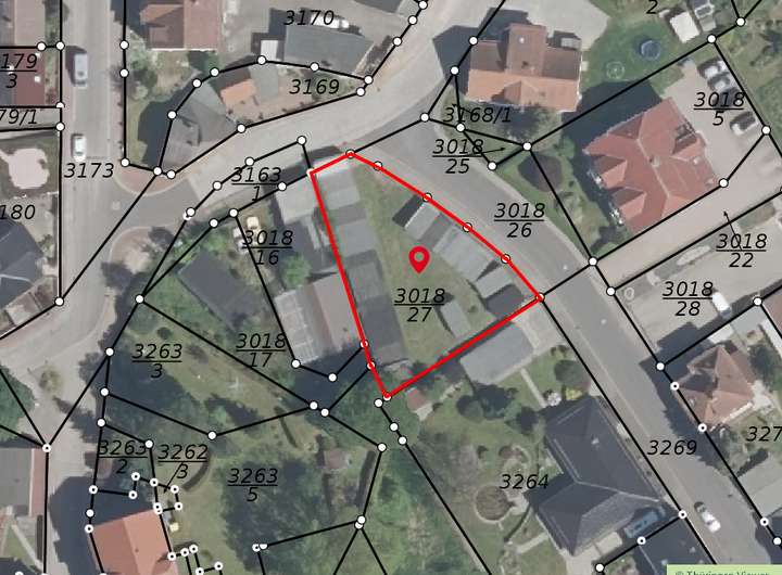 Das Verkaufsobjekt befindet sich im Stadtteil Mehlis in einem allgemeinen Wohngebiet. Es handelt sich um ein Eckgrundstück zwischen dem Augustweg im Norden und der Straße Heinrichbach im Westen.