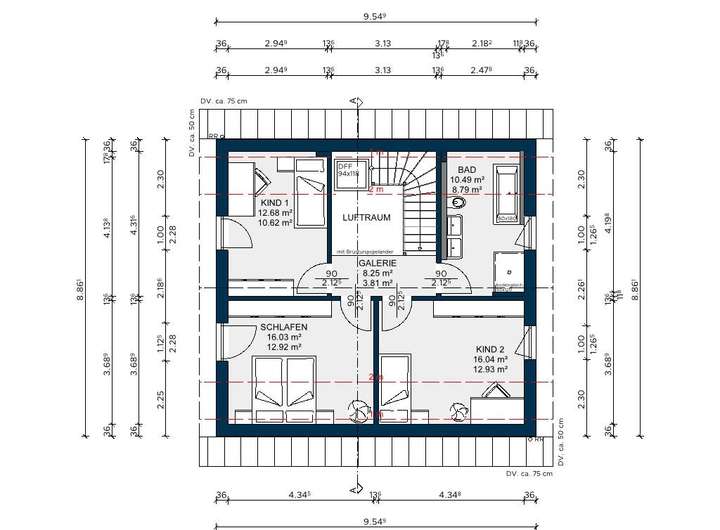 Im Dachgeschoss dieses Hauses finden Sie Ihre privaten Rückzugsorte, die Ruhe und Entspannung versprechen. Das geräumige Hauptschlafzimmer lädt zum Ausruhen ein, während die beiden Kinderzimmer genügend Platz bieten, damit Ihre Kinder sich entfalten und ihre Träume verwirklichen können. Hier können Sie die Geborgenheit und Harmonie eines echten Familienlebens spüren und wertvolle Erinnerungen schaffen.