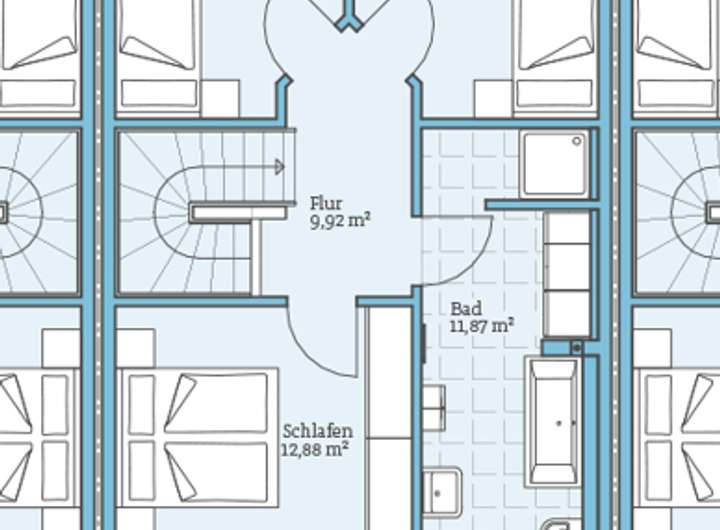 Der Zwerchgiebel sorgt für Kopffreiheit und seine großen Fensterflächen bringen viel Licht für ein weiteres Kinderzimmer, ein Gäste- und Arbeitszimmer oder einen Sport- und Hobbyraum sowie zusätzlichen Stauraum bis unter die Dachschrägen.