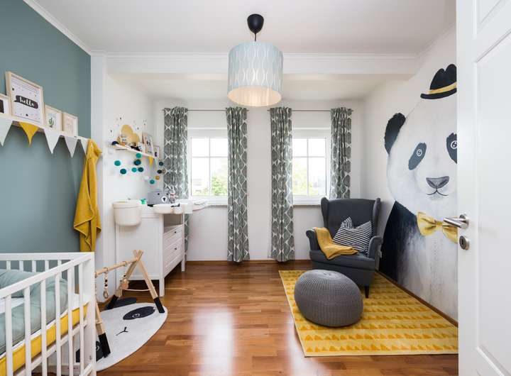 Im Obergeschoss befinden sich 2 helle Kinderzimmer mit bodentiefen Fenstern. (je über 12 m²).