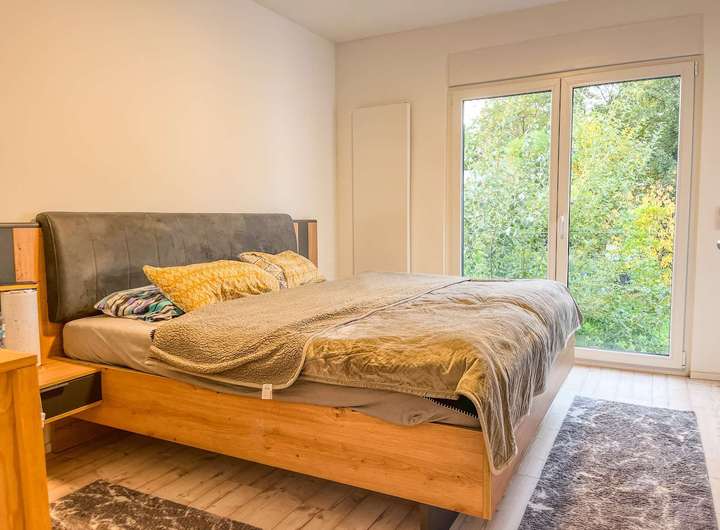 Im Untergeschoss befindet sich ein geräumiger Wasch- und Trockenraum, ein praktischer Abstellraum sowie ein ausgebautes Zimmer mit separatem Zugang zum Garten – ideal als Homeoffice, Gästezimmer oder Rückzugsort.