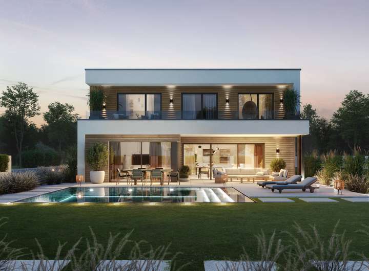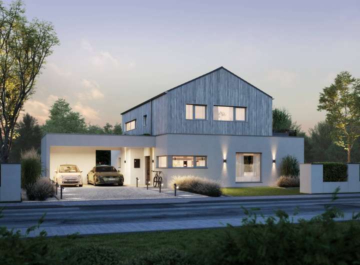 Das Haus beeindruckt mit durchdachten Details und einer hochwertigen Ausstattung. Große Fensterfronten sorgen für ein helles Wohngefühl und lassen Innen- und Außenbereich harmonisch verschmelzen. Die geschickt platzierte Wandöffnung und die Schiebetür zwischen Küche und Technikraum bieten maximale Flexibilität im Alltag. Die Galerie im Dachgeschoss verstärkt das offene Raumgefühl und sorgt für eine angenehme Wohnatmosphäre.