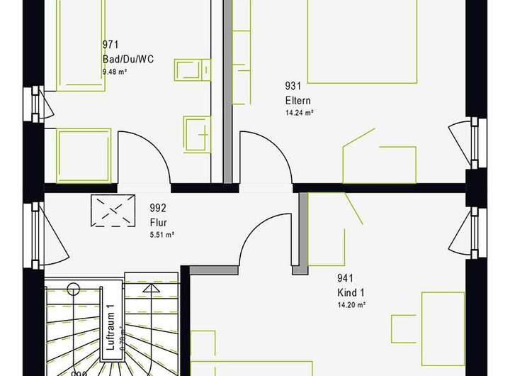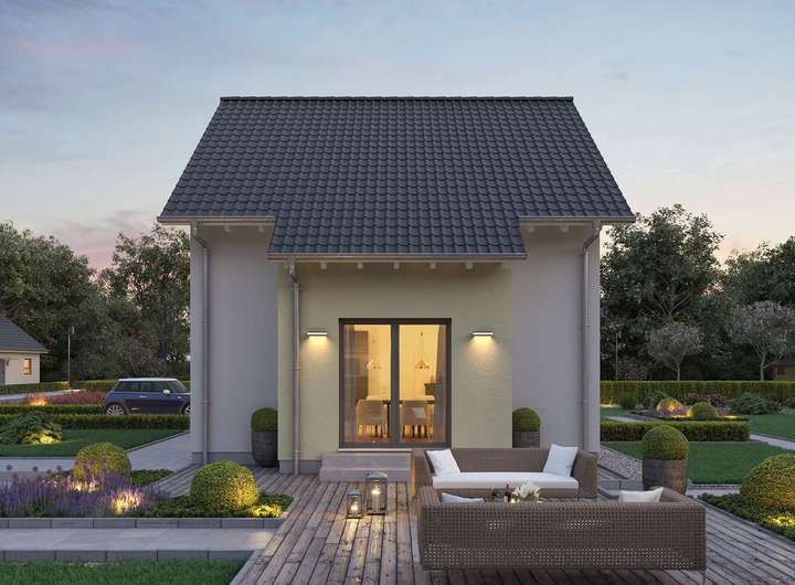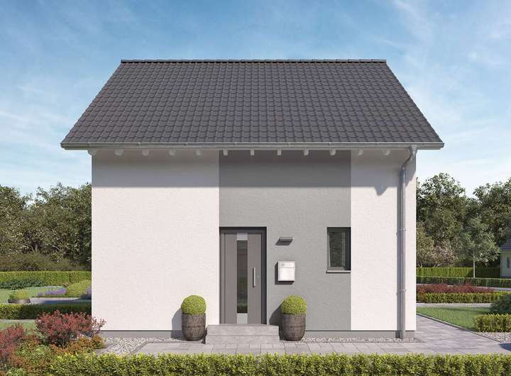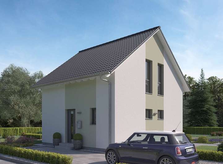 Unser Einfamilienhaus LifeStyle 09.01 S eignet sich für ein lebendiges Wohnen auf zwei Ebenen. Im Erdgeschoss befinden sich ein kombinierter Wohn-, Ess- und Küchenbereich. Über eine Treppe führt der Weg ins Dachgeschoss. Dort finden unter dem Dach kleine Familien in einem Elternschlafzimmer und einem Kinderzimmer Ruhe und Entspannung. Auf einem nahezu quadratischen Ausgangsgrundriss ergibt sich eine Nettogrundfläche von ca. 98 m² - ideal auch für kleine Grundstücke. Das klassische Satteldach unterstreicht den einfachen und doch lieblichen Charme des kompakten Einfamilienhauses.