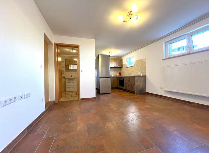 Zimmer-Einliegerwohnung mit eigenem Eingang (leicht ins Haupthaus integrierbar).