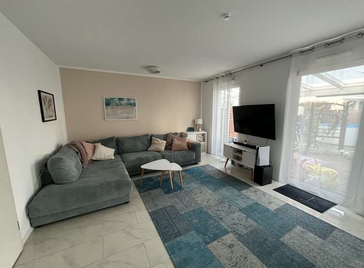 Der Garten und die Terrasse mit beleuchteter Überdachung sind Richtung Westen ausgerichtet und bietet viele Sonnenstunden.