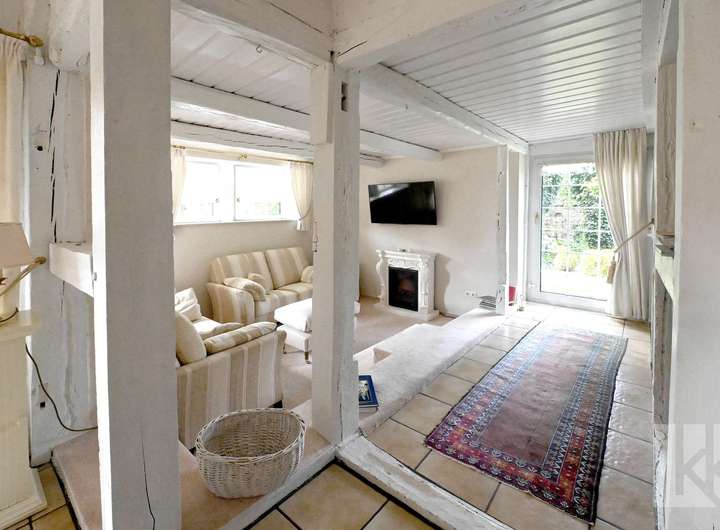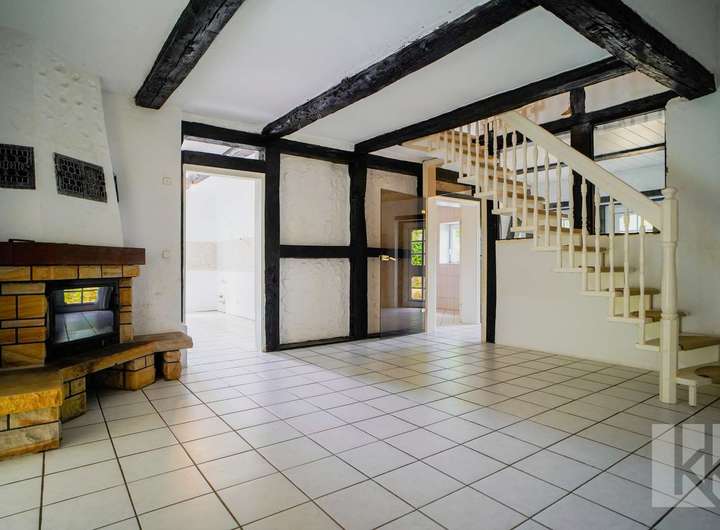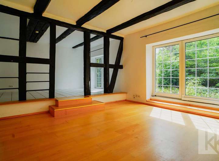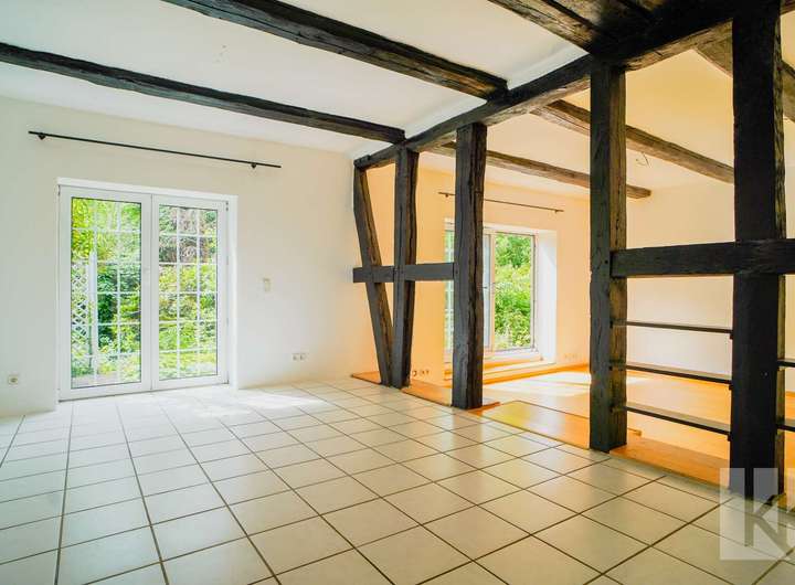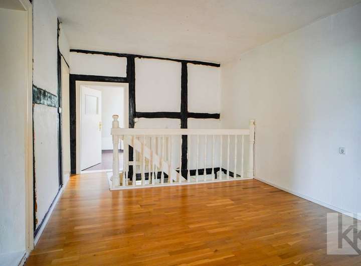 Beim Betreten des Erdgeschosses dieses Hauses begeistern die hohen Decken und der Blick auf das Fachwerk. Die Immobilie versprüht eine einladende Atmosphäre mit viel Gemütlichkeit und Großzügigkeit.