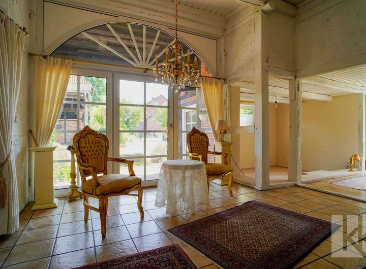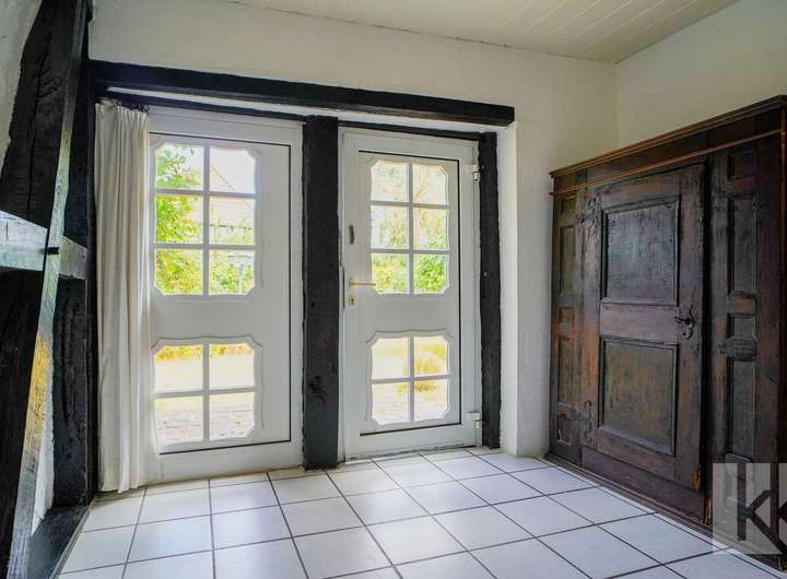 Ruhiges Wohnen im Grünen mit viel Platz zum Wohlfühlen: Zum Verkauf steht dieses, im Jahre 1815 ursprünglich erbaute Fachwerkhaus, auf einem 3057 m² großen Grundstück. Es verbindet ein Einfamilienwohnhaus mit einer separaten barrierearmen Wohneinheit. Außerdem befindet sich ein großer Stall auf dem Hof.