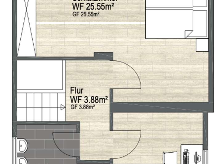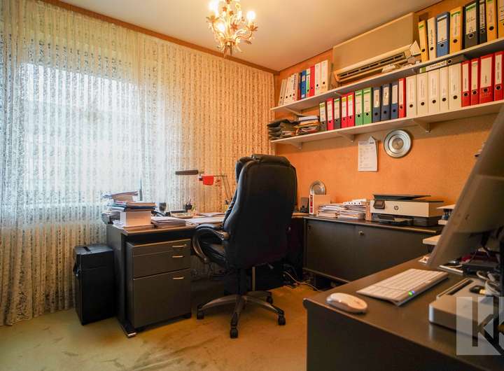 In der erhöhten Ebene erwarten Sie ein großes Schlafzimmer, das bei Bedarf in ein zusätzliches Zimmer geteilt werden kann, ein weiteres Zimmer, welches multifunktionale als Schlafzimmer, Büro oder Hobbyraum genutzt werden kann und das große Familienbadezimmer, das mit einem Doppelwaschtisch, einer Dusche und einer Badewanne ausgestattet ist und über Tageslicht verfügt.