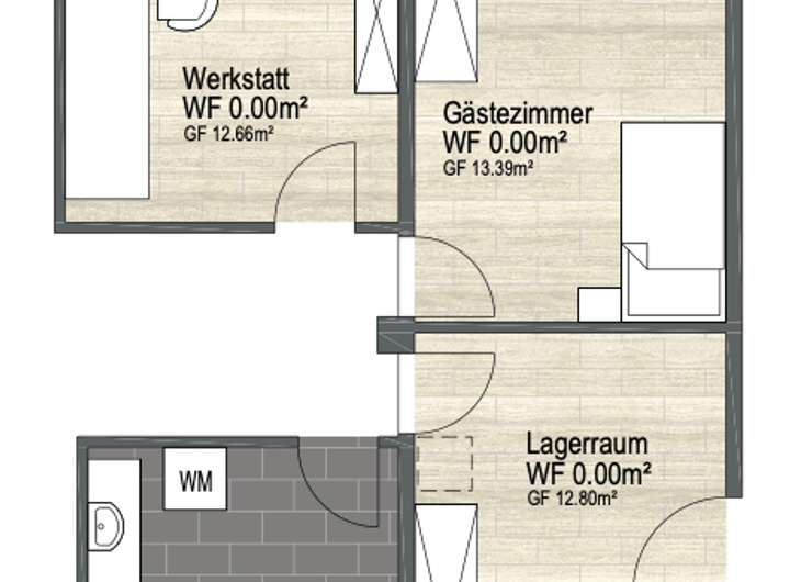 In der abgesengten Ebene befinden sich ein gepflegter Wäscheraum, ein großer Lagerraum, ein Gästezimmer und eine Werkstatt.