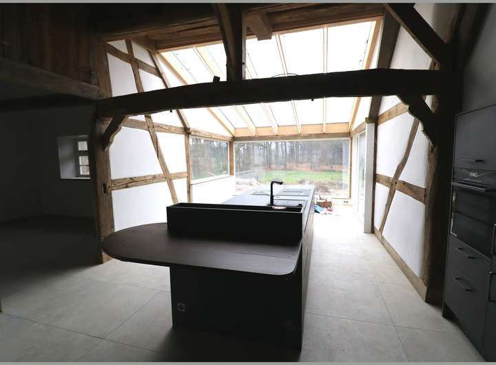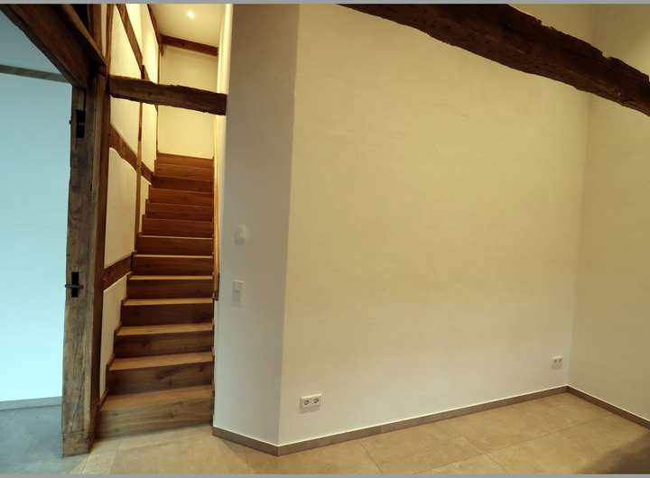 Das Fachwerkhaus steht unter Denkmalschutz und wurde komplett saniert. Es wurde eine hochwertige Einbauküche eingebaut.