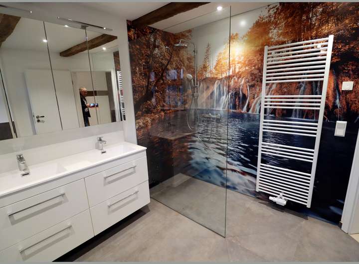 Das Haus verfügt über eine Fußbodenheizung, die über eine Luftwärmepumpe beheizt wird.
