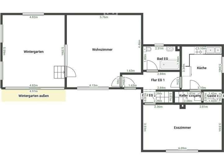 Auf ca. 120 m² Wohnfläche verteilen sich 4,5 Zimmer, die eine flexible und familienfreundliche Raumaufteilung ermöglichen. Zwei voll ausgestattete Badezimmer sorgen für hohen Wohnkomfort. Besonders hervorzuheben ist das derzeitige Esszimmer, das sich aufgrund seiner Lage und Größe hervorragend als zusätzlicher Schlafraum oder Homeoffice eignet. Das großzügige, helle Wohnzimmer bildet das Herzstück des Hauses und grenzt direkt an den Warmwintergarten, der mit einem neuen Dach aus dem Jahr 2023 ausgestattet wurde und ganzjährig genutzt werden kann.