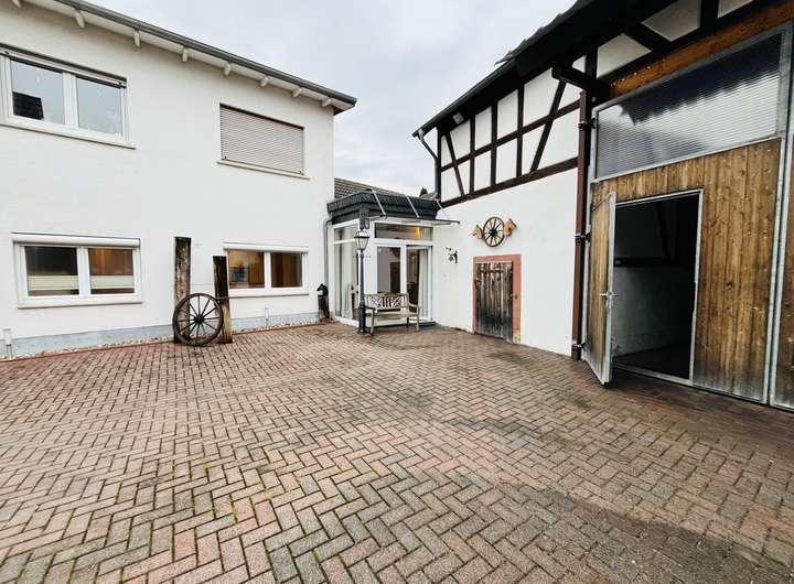 Zum Verkauf steht ein außergewöhnliches Anwesen, dessen ursprüngliches Baujahr auf 1966 zurückgeht und das umfassend in den Jahren 1998 und 2003 erweitert und modernisiert wurde. Das Anwesen umfasst drei Wohneinheiten mit einer Gesamtwohnfläche von ca. 380 qm. Die erste verfügt über ca. 170 qm Wohnfläche sowie eine zusätzlich überdachte Terrasse von ca. 36 qm. Die zweite Wohneinheit ist ca. 130 qm groß und die dritte Wohneinheit umfasst ca. 60 qm. Zudem gibt es zwei Büroeinheiten, die jeweils ca. 30 qm groß sind und derzeit vermietet werden. Die zusätzlichen Nutzflächen des Anwesens belaufen sich auf insgesamt ca. 273 qm und umfassen Stallungen, Nebengebäude, eine Scheune mit einem Gewölbe darunter, eine Halle und eine Werkstatt. Der umbaute Raum beträgt ca. 2.772 m³, was den großzügigen Charakter des Objektes unterstreicht. Strom, Wasser und Kanal wurden im Jahr 2000 saniert, während der Hof und die Fenster im Jahr 2006 erneuert wurden. Zur Eigennutzung stehen eine große, sehr schöne Wohnung von ca. 170 qm mit Klimaanlage, eine tolle überdachte und beleuchtete Terrasse sowie ein Garten bereit. Darüber hinaus gehören eine Halle, Nebengebäude, Stallungen, eine Scheune und eine Werkstatt zum Objekt. Derzeit sind zwei Wohnungen mit ca. 60 qm und ca. 120 qm sowie zwei Büros vermietet. Zu den besonderen Merkmalen des Anwesens gehören eine Durchfahrtshöhe in die Scheune von ca. 4,10 m, zusätzliche PKW-Stellplätze im Hof sowie eine Zentralheizung auch in der „Reiter- oder Partystube“ und den Nebenräumen. Die Pferdehaltung ist erlaubt. Die gewerbliche Nutzung des gesamten Objekts ist gestattet!