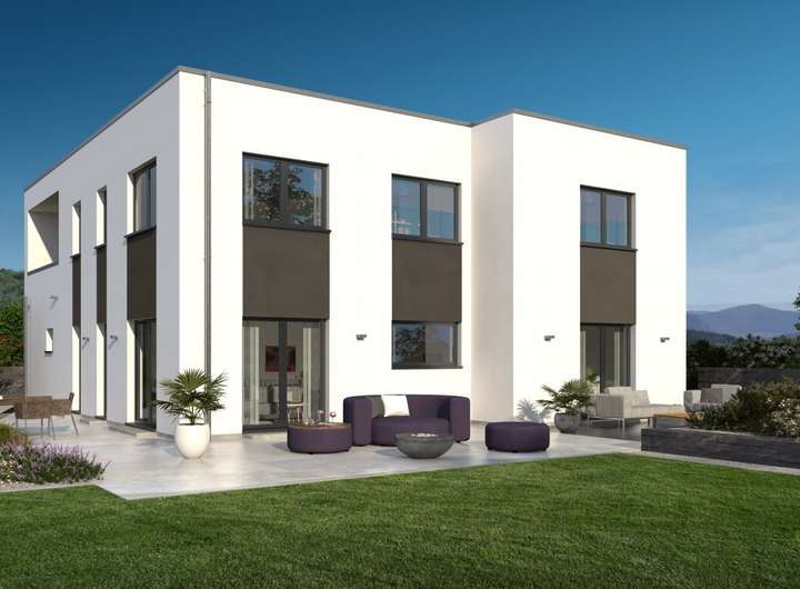 Unter dem Flachdach stehen zwei Wohnungen über jeweils zwei Ebenen zur Verfügung. Wohnung eins eignet sich ideal als Einliegerwohnung. Es ist ausreichend Raum für einen großen Wohn-Ess-Bereich mit sich direkt anschließender Küche, ein Arbeitszimmer sowie ein Badezimmer. Durch die zentral gelegene Treppe geht es ins Obergeschoss, wo sich neben einer großen Galerie auch ein weiteres Badezimmer sowie ein Schlafzimmer befinden. Durch ihre Größe und ihre durchdachte Raumaufteilung besticht die Hauptwohnung des Hauses. Im Erdgeschoss ist das Herzstück der mehr als 55 m² große Wohn-Ess-Koch-Bereich. Außerdem auf dieser Ebene: ein Gäste-WC sowie ein großer Hauswirtschaftsraum. Im Obergeschoss, das durch eine zentral im Wohnbereich liegende Treppe erreicht wird, finden zwei Kinder ausreichend Platz - und verfügen zudem über ein eigenes Bad. Der Bereich der Eltern besteht aus einem Schlaf- und Ankleidezimmer, einem Arbeitsbereich, einem großen Bad und einem Zugang zur Loggia.