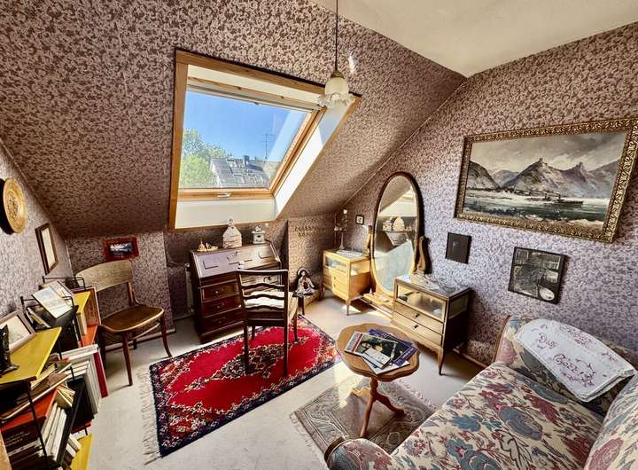Im Ober- und Dachgeschoss stehen Ihnen mehrere Schlafzimmer, ein weiterer Wohn- oder Arbeitsbereich sowie zwei Tageslichtbäder zur Verfügung – perfekt, um individuelle Wohnkonzepte zu realisieren. Der Balkon im Obergeschoss bietet zusätzlichen Freiraum und einen schönen Blick ins Grüne.