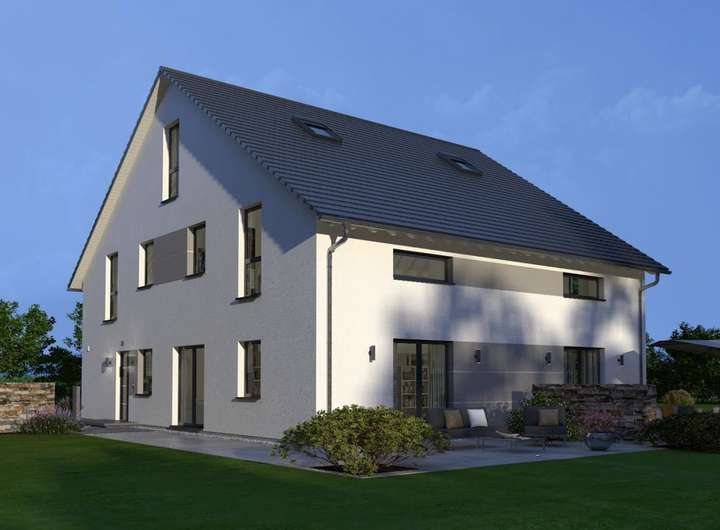 Mehr als 380 m² Wohnraum, verteilt auf zwei identisch geschnittene Einheiten - unser Doppelhaus 15 bietet maximalen Wohnkomfort ohne Kompromisse. Schon das Erdgeschoss besticht durch seine großzügige Raumaufteilung: Der offen gehaltene Koch-Ess-Bereich sowie der sich unmittelbar anschließende Wohnbereich überzeugen mit seiner Größe von mehr als 60 m2. Die großen Fensterfronten ermöglichen einen direkten Zugang zum Garten und sorgen für einen Rundum-Lichteinfall. Abgerundet wird das Raumangebot im Erdgeschoss durch eine praktische Speisekammer direkt neben der Küche, einen Hauswirtschaftsraum sowie ein Gäste-WC. Im ersten Obergeschoss befindet sich der Rückzugsort für die Kinder: Neben zwei großen Zimmern gibt es eine Galerie, ein Bad sowie einen Abstellraum. Unmittelbar unterm Satteldach: das Reich der Eltern. Diese verfügen über ein knapp 22 m² großes Schlafzimmer sowie ein Badezimmer mit Wanne, Dusche und WC. Mehr Wohlfühlambiente geht nicht.