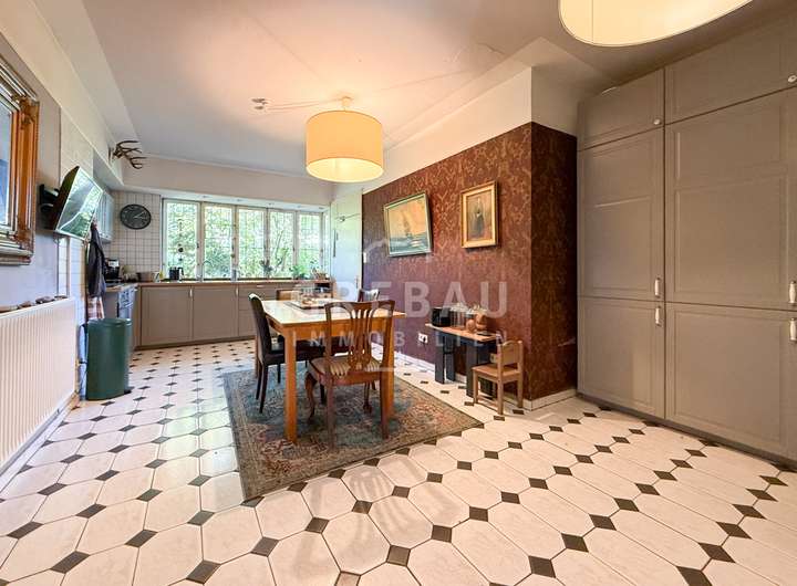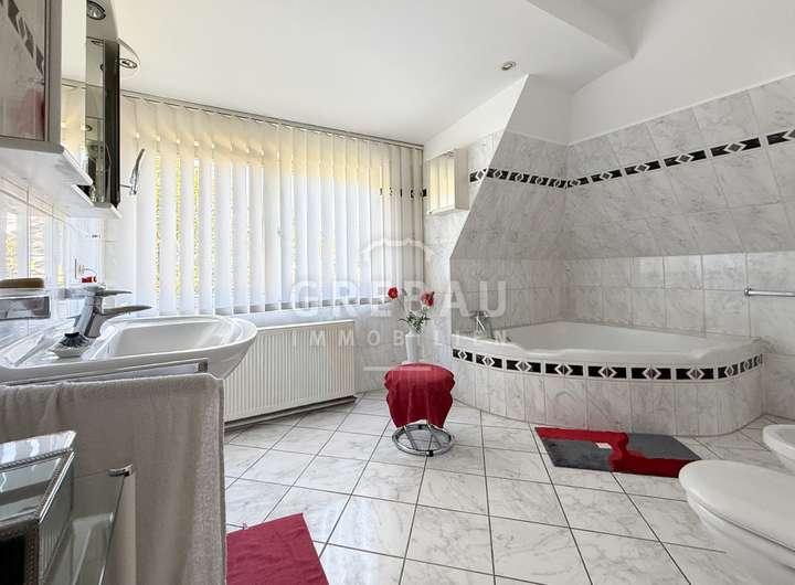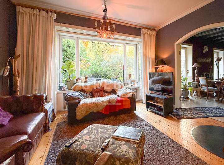Ursprünglich wurde das Haus um 1948 auf diesem herrlichen Grundstück im Landhausstil erbaut, in den 1970er Jahren erneuert und 1994 um einen Anbau erweitert. Hervorzuheben sind hier der große Essbereich mit offenen Holzbalken und Delfter Kacheln sowie einem außergewöhnlich großen, offenem Kamin. Ca. 350 m² werden als Wohnfläche derzeit von drei Wohnparteien und als Mehrgenerationenhaus genutzt. Insgesamt hat diese Immobilie eine Wohn-/Nutzfläche von ca. 500 m². Das ganze Haus wird nach Absprache frei geliefert. Die technische und optische Ausstattung werden Sie teilweise erneuern wollen.
