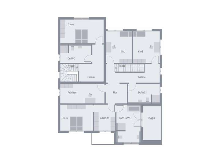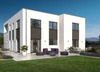 Unter dem Flachdach stehen zwei Wohnungen über jeweils zwei Ebenen zur Verfügung. Wohnung eins eignet sich ideal als Einliegerwohnung. Es ist ausreichend Raum für einen großen Wohn-Ess-Bereich mit sich direkt anschließender Küche, ein Arbeitszimmer sowie ein Badezimmer. Durch die zentral gelegene Treppe geht es ins Obergeschoss, wo sich neben einer großen Galerie auch ein weiteres Badezimmer sowie ein Schlafzimmer befinden. Durch ihre Größe und ihre durchdachte Raumaufteilung besticht die Hauptwohnung des Hauses. Im Erdgeschoss ist das Herzstück der mehr als 55 m² große Wohn-Ess-Koch-Bereich. Außerdem auf dieser Ebene: ein Gäste-WC sowie ein großer Hauswirtschaftsraum. Im Obergeschoss, das durch eine zentral im Wohnbereich liegende Treppe erreicht wird, finden zwei Kinder ausreichend Platz - und verfügen zudem über ein eigenes Bad. Der Bereich der Eltern besteht aus einem Schlaf- und Ankleidezimmer, einem Arbeitsbereich, einem großen Bad und einem Zugang zur Loggia.