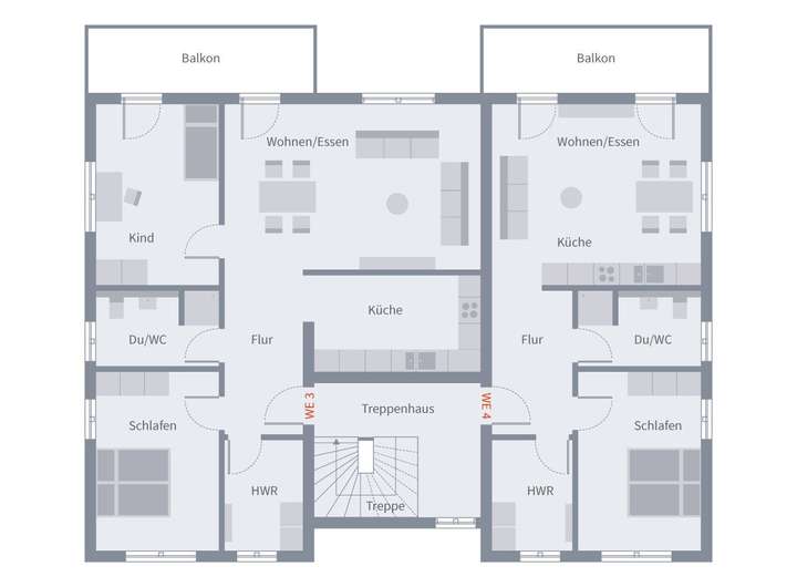 Dieses moderne Mehrfamilienhaus bietet vier unterschiedlich große, großzügig und offen gestaltete Wohneinheiten, die sich ideal für Familien, Paare oder Einzelpersonen eignen. Im Erdgeschoss befinden sich zwei barrierefreie Wohnungen, um den Bedürfnissen von Menschen mit eingeschränkter Mobilität gerecht zu werden. Diese Einheiten bieten leichten Zugang und komfortables Wohnen ohne Hindernisse. Beide Erdgeschosswohnungen bestechen durch ein offenes Raumkonzept, das viel Platz für individuelle Gestaltungsideen lassen. Im Obergeschoss befinden sich die beiden anderen Wohneinheiten, die jeweils über einen eigenen Balkon verfügen. Diese bieten einen wunderbaren Rückzugsort im Freien und laden dazu ein, die frische Luft zu genießen. Alle Einheiten zeichnen sich durch helle, lichtdurchflutete Räume aus, die eine freundliche und einladende Atmosphäre schaffen.