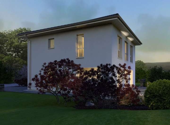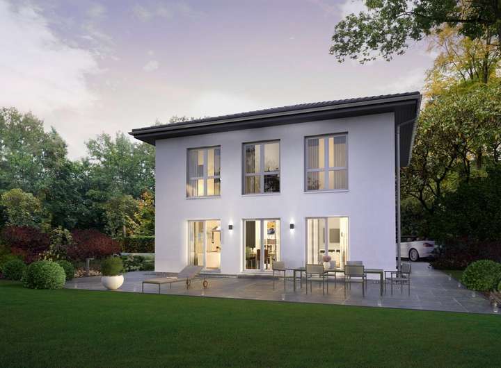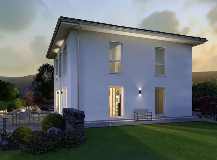 Als wahres Raumwunder entpuppt sich die Stadtvilla 21. Auf einer Wohnfläche von knapp 190 Quadratmetern finden hier Familien mit bis zu drei Kindern Platz - und haben sogar noch Gelegenheit, Schlafgästen einen eigenen Raum zur Verfügung zu stellen oder sich alternativ ein Büro oder einen Hobbyraum einzurichten. Durch die freundliche und helle Diele führt der Weg direkt in den Wohn-Ess-Kochbereich, der das perfekte Zentrum des Familienlebens ist. Komplettiert wird das Angebot im Erdgeschoss durch ein Gästezimmer, WC, Hauswirtschaftsraum sowie eine Abstellkammer. Die obere Etage ist so konzipiert, dass dort verschiedene Nutzungsmöglichkeiten denkbar sind: Neben dem Elternschlafzimmer und einem 15 Quadratmeter großen Bad mit separatem Toilettenbereich befinden sich dort drei weitere Zimmer. Hier finden drei Kinder Platz, es besteht aber auch die Option, dass einer der drei Räume als Spielzimmer fungiert.