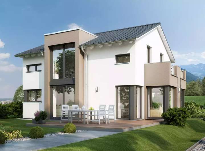 Der angegebene Preis bezieht sich auf ein schlüsselfertiges Haus mit allen abgebildeten Bauteilen inklusive Grundstück.