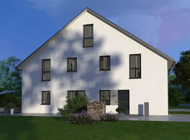 Mehr als 380 m² Wohnraum, verteilt auf zwei identisch geschnittene Einheiten - unser Doppelhaus 15 bietet maximalen Wohnkomfort ohne Kompromisse. Schon das Erdgeschoss besticht durch seine großzügige Raumaufteilung: Der offen gehaltene Koch-Ess-Bereich sowie der sich unmittelbar anschließende Wohnbereich überzeugen mit seiner Größe von mehr als 60 m2. Die großen Fensterfronten ermöglichen einen direkten Zugang zum Garten und sorgen für einen Rundum-Lichteinfall. Abgerundet wird das Raumangebot im Erdgeschoss durch eine praktische Speisekammer direkt neben der Küche, einen Hauswirtschaftsraum sowie ein Gäste-WC. Im ersten Obergeschoss befindet sich der Rückzugsort für die Kinder: Neben zwei großen Zimmern gibt es eine Galerie, ein Bad sowie einen Abstellraum. Unmittelbar unterm Satteldach: das Reich der Eltern. Diese verfügen über ein knapp 22 m² großes Schlafzimmer sowie ein Badezimmer mit Wanne, Dusche und WC. Mehr Wohlfühlambiente geht nicht.