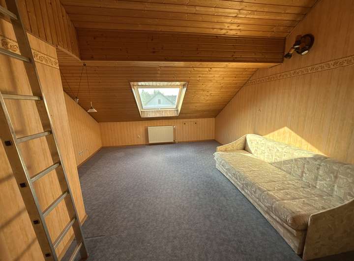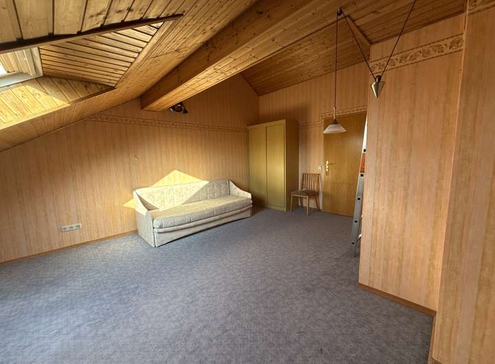 Im 1. Obergeschoss stehen zwei gut geschnittene Schlafzimmer sowie ein modernes Badezimmer zur Verfügung, das im Jahr 2016 vollständig erneuert wurde und zeitlos gestaltet ist. Das Dachgeschoss beherbergt ein großzügiges Studiozimmer, das sich ideal für individuelle Nutzungsmöglichkeiten eignet – beispielsweise als Elternschlafzimmer, Homeoffice, Gästezimmer, Hobbyraum oder zusätzlicher Wohnbereich.