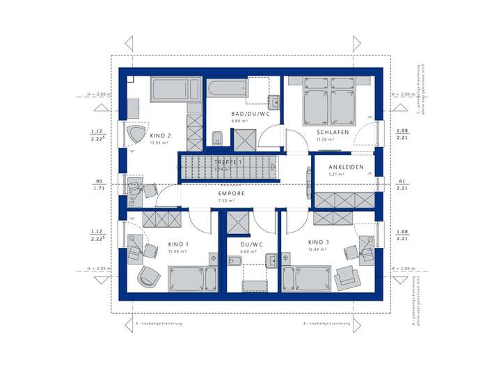 Das Bien-Zenker Haus EVOLUTION 162 ist ein Meisterwerk der individuellen Architektur, das speziell nach Ihren Wünschen und Vorstellungen gestaltet wird. Mit einer großzügigen Wohnfläche von 162 m² und einer durchdachten Raumaufteilung auf 1,5 Etagen bietet dieses Fertighaus ausreichend Platz für Ihre Familie. Das innovative Designkonzept ermöglicht es Ihnen, verschiedene Dachformen und Architektur-Bauteile zu kombinieren, sodass Ihr neues Zuhause nicht nur funktional, sondern auch ästhetisch ansprechend ist. Die drei Schlafzimmer und das Badezimmer sind ideal aufgeteilt, um Rückzugsmöglichkeiten und Privatsphäre zu gewährleisten, während die offene Gestaltung des Wohnbereichs für ein einladendes Ambiente sorgt.