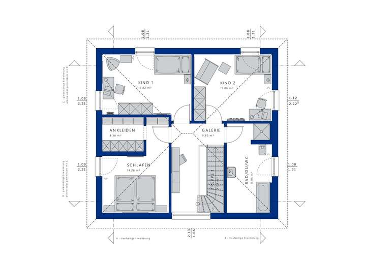 Das projektiert Fertighaus EVOLUTION 154 von Bien-Zenker steht für Vielfalt und Individualität in Architektur und Design. Mit einer großzügigen Wohnfläche von 154 m² und einer durchdachten Raumaufteilung bietet es Platz für die ganze Familie. Der attraktive Eingangsbereich führt Sie direkt in ein lichtdurchflutetes Wohn- und Esszimmer, das sich über die gesamte Hauslänge erstreckt und somit eine einladende Atmosphäre schafft. Der offene Übergang zur großen, modernen Küche, ergänzt durch eine separate Speisekammer, eröffnet vielfältige Nutzungsmöglichkeiten - ob für gemeinsame Kochabende oder gesellige Stunden mit Freunden und Familie. Die drei Schlafzimmer, die im Obergeschoss liegen, bieten Ihnen Rückzugsmöglichkeiten, während das großzügige Wellness-Bad den perfekten Ort zur Entspannung schafft. Das komplette Konzept des EVOLUTION 154 ist darauf ausgelegt, Ihre individuellen Wünsche und Vorstellungen zu realisieren und ein Zuhause zu schaffen, das sowohl funktional als auch ästhetisch ansprechend ist.