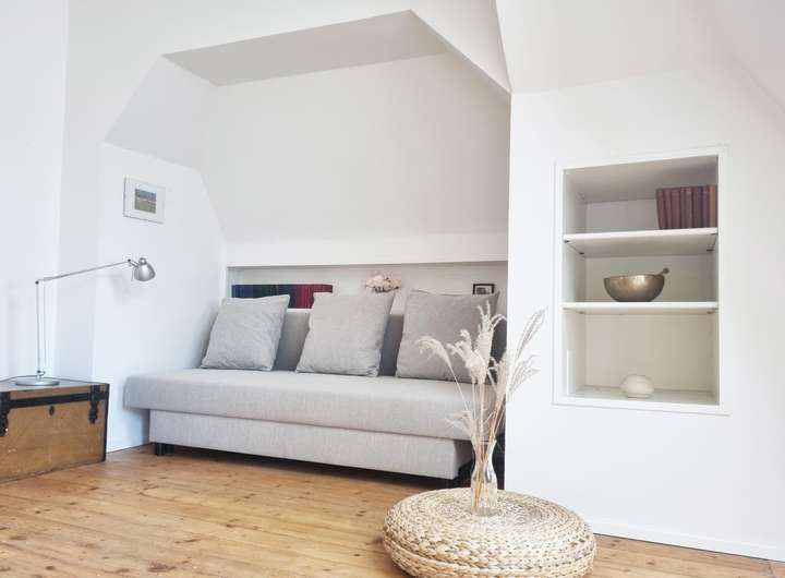 Über eine charmante Holztreppe erreichen Sie das Obergeschoss, welches Ihnen 2,5 Schlafzimmer, einen geräumigen Flurbereich sowie ein kleines Badezimmer bietet. Eine Monarchtreppe führt Sie in den als Ablagefläche dienenden Spitzboden.