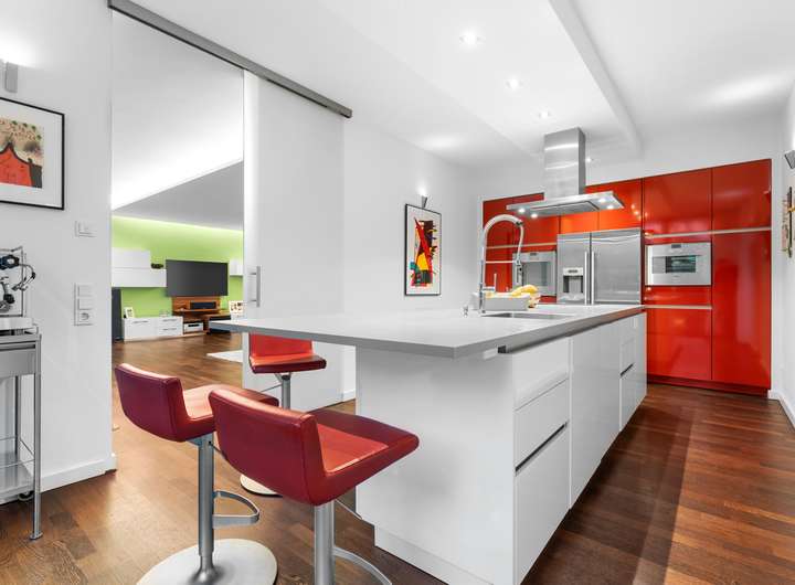 - Stilvolle Einbauküche sowie hochwertige Innenausstattung