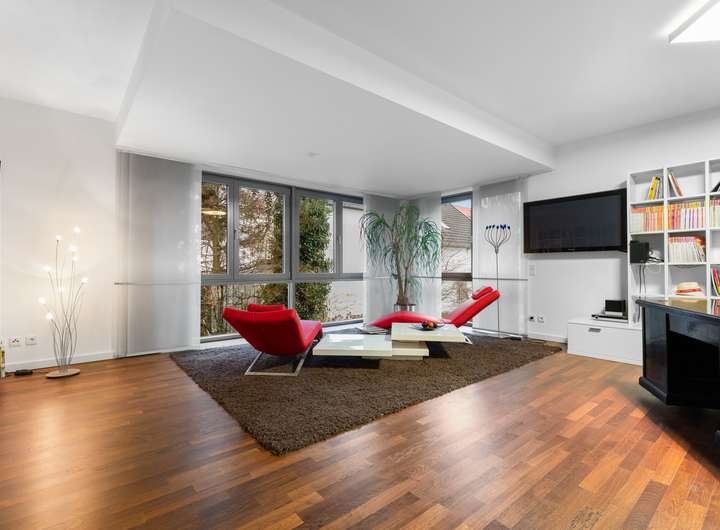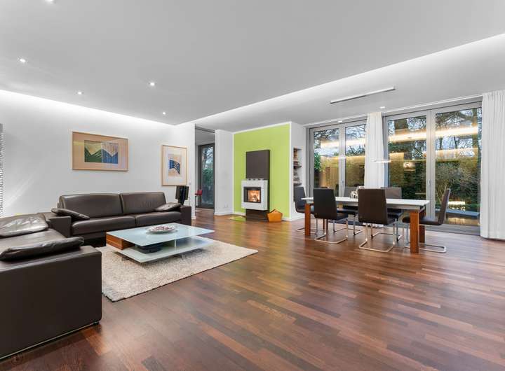 - Überwiegend bodentiefe Fenster mit hohem Tageslichteinfall