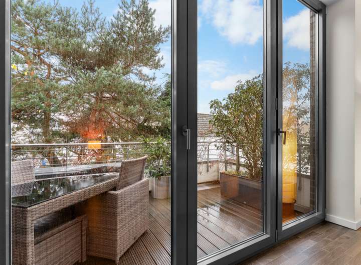 - Sonnig ausgerichteter Balkon im 2. Obergeschoss, angebunden an das Bewässerungssystem