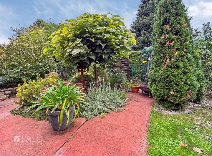Das dazugehörige Grundstück umfasst eine Fläche von 558 Quadratmetern. Es bietet genügend Platz für einen gepflegten Garten, der zum Spielen, Entspannen und Gärtnern genutzt werden kann. Ein kleines Gartenparadies, das zu jeder Jahreszeit Freude bereitet. Ein teileingelassener Rundpool mit einem Durchmesser von 3,5m und einer Tiefe von 1,5m wurde in den letzten Jahren integriert.