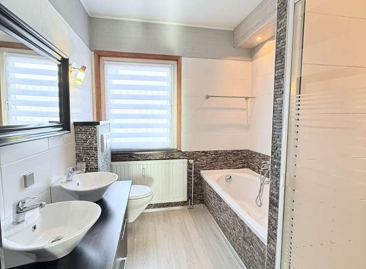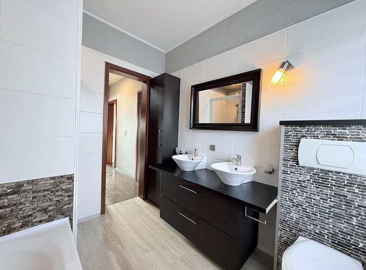 - modernisiertes Vollbad mit Wanne, Dusche und zwei Waschbecken