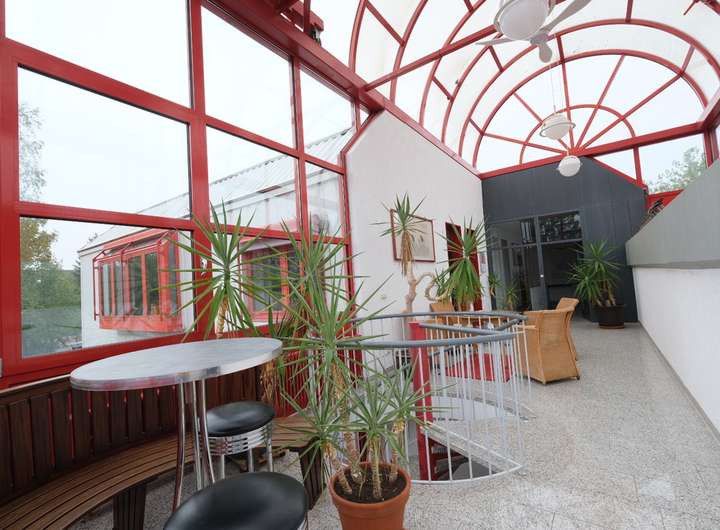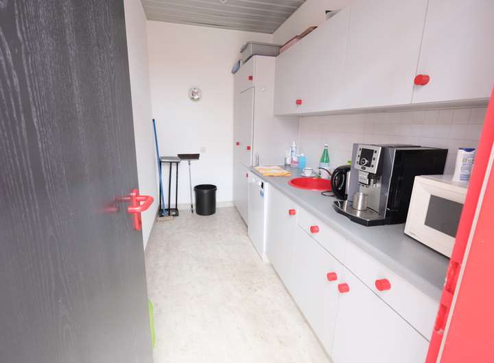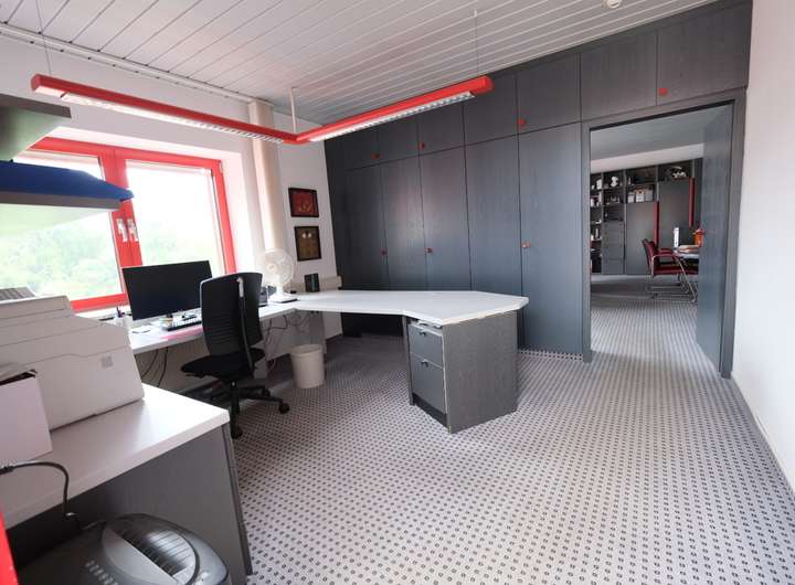 Im Obergeschoss finden Sie einen Aufenthaltsbereich, Teeküche, Büro, Chefbüro und unterschiedliche Abstellräume.