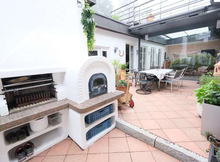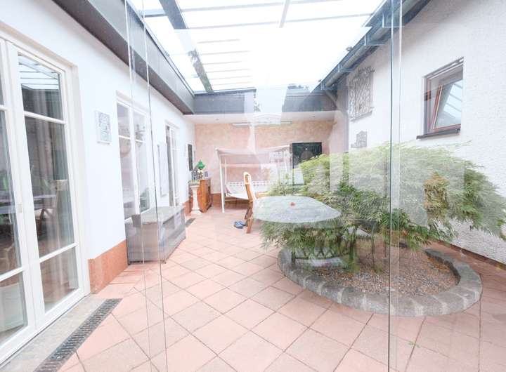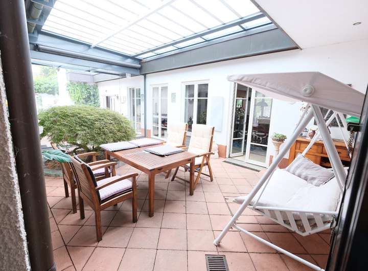 Eine wunderschöne Überdachung verbindet das Wohnhaus mit dem Anbau. Die Villa überzeugt mit exklusivem Interieur, rund um liebe zum Detail.