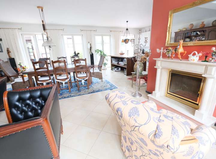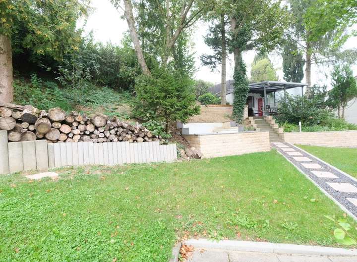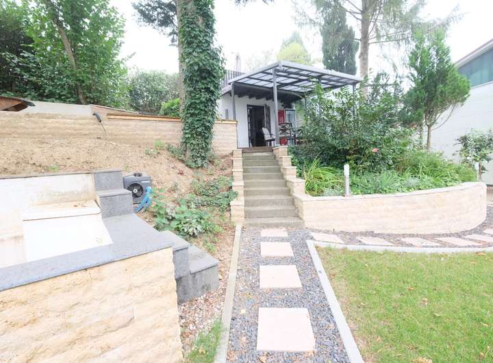 Der Anbau, ursprünglich als Büro mit Lagerraum vorgesehen, wurde ca. 1973 erbaut und bietet auf ca.210 m² Nutzfläche einiges an Platz. Der Anbau ist aktuell mit einer tollen Küche, exklusiver Einrichtung, WC, weitere Zimmer/Räumlichkeiten und einem Kamin ausgestattet. Durch die Verbindung zum Wohnhaus ist dieser Bereich direkt zugänglich. Die überdachte und teils geschlossene Terrasse zwischen dem Wohnhaus und dem Anbau bietet Sitz- und Grill Gelegenheit zu jederzeit.