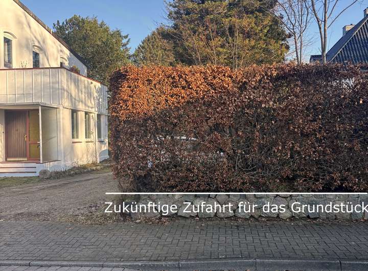 Es wird eine Auffahrtsbreite von ca. 4,50 m entstehen, die rechts an der Bestandsimmobilie vorbeiführen wird. Die Auffahrt muss erst hergestellt werden.