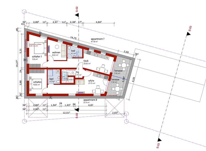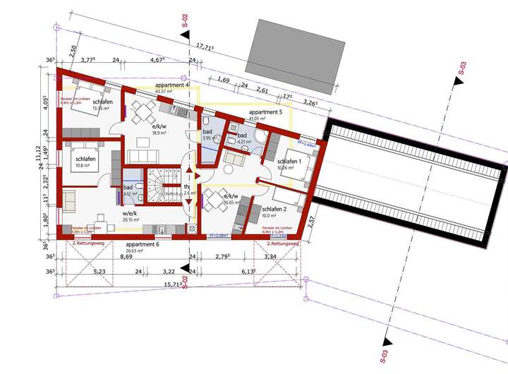 Die geplanten Einheiten bieten je nach Apartment 1 bis 3 Zimmer und überzeugen durch durchdachte, funktionale Grundrisse. Die Apartmentgrößen variieren zwischen ca. 26 m² und 67 m², teilweise ergänzt durch attraktive Dachterrassen. Das genehmigte Nutzungskonzept ist hotelähnlich ausgelegt und verzichtet bewusst auf Keller- und Abstellräume, was eine effiziente und wirtschaftliche Bewirtschaftung ermöglicht.