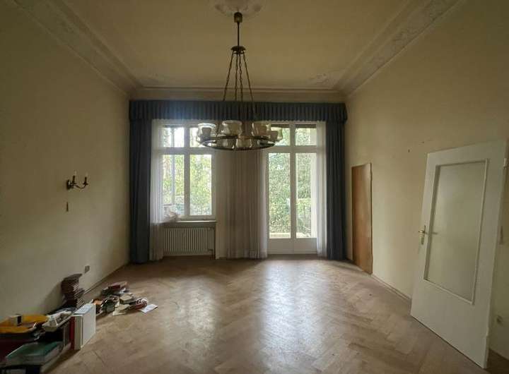 Das Objekt wird als gewachsene Gesamteinheit veräußert und lädt dazu ein, im Rahmen eines stimmigen Gesamtkonzepts behutsam weitergeschrieben zu werden. Während Hochparterre und Belle Étage mit ihren erhaltenen Stuckdecken, Parkettböden und dem historischen Kachelofen vor allem nach stilvollen Schönheits-reparaturen und einer zeitgemäßen Badgestaltung verlangen, eröffnen das Gartengeschoss und insbesondere das Dachgeschoss Raum für eine umfassende Neuinterpretation – mit Ausbauarbeiten, die das volle Potenzial dieser Villa künftig sichtbar machen.