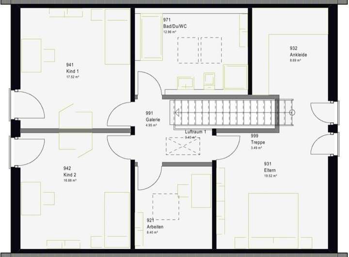 - massa Freiraum = Wohnraumhöhe 2,75 m im EG und DG serienmäßig