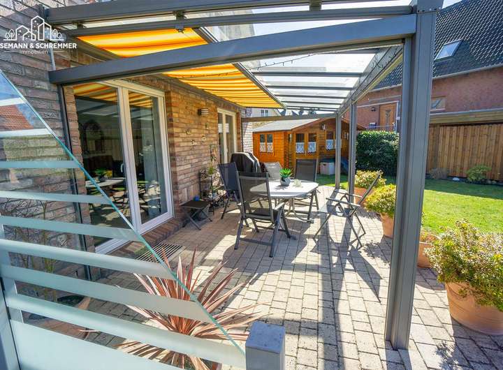 - Terrasse mit Glasüberdachung (inkl. elektrischer Unterbaumarkise von 2019)