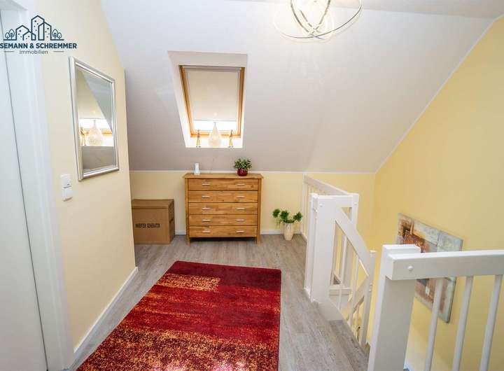 Das gesamte Haus wurde regelmäßig modernisiert, zuletzt 2022 mit einer hochwertigen Duschsanierung. Weitere Ausstattungsmerkmale wie der Designbelag und neue Anstriche im Wohnbereich, Treppenhaus und der Empore (2015), die Erneuerung von Teppichboden und Anstrich im Büro (2016) sowie der neue Designbelag im Elternschlafzimmer (2024) unterstreichen den gepflegten Zustand.